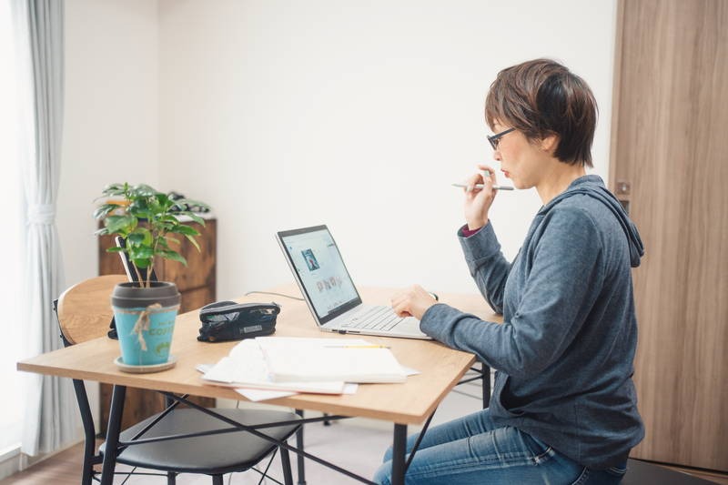 事務所では黙々とパソコンに向かいコツコツ作業…。